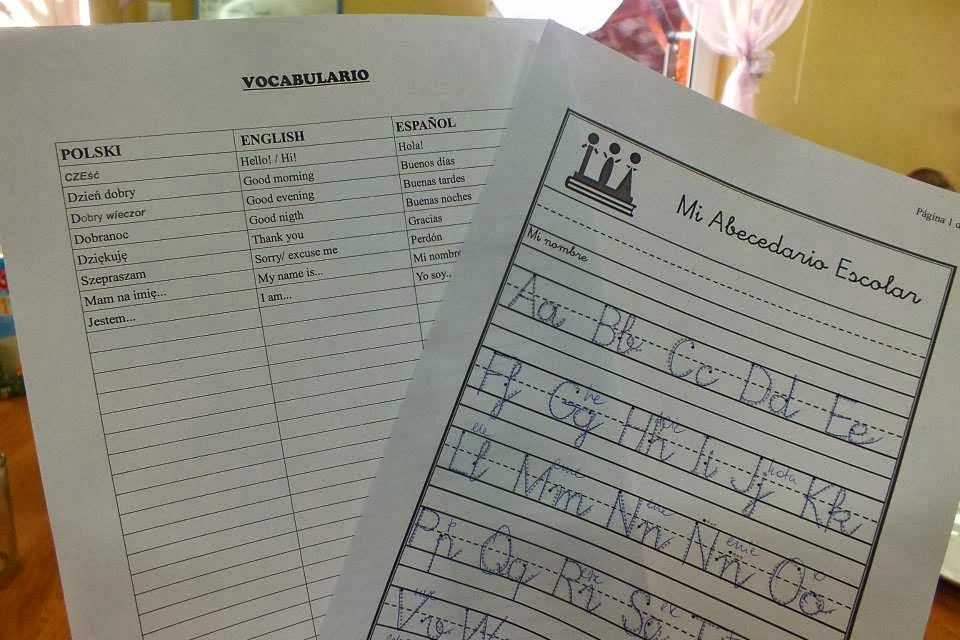 On 1st of October, I started Spanish classes for children (also for some adults) in Bukwica with Dolina Miłości . I started with the basics, the Spanish alphabet and basic words of daily use: "Good morning", "Hello", "thank you", etc.. For the class was not boring, I prepared some puzzles for the children to composed it and painted. Finally among all create a mural, which we painted words in Spanish. It was very nice! Thank you all for putting so much interest in the lesson!